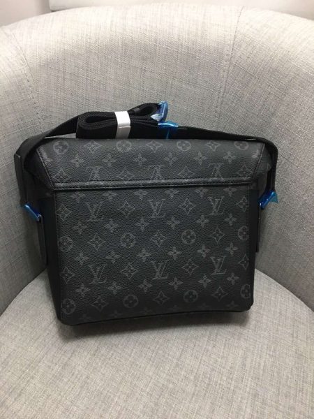 M61692 浅蓝条丝印!黑花 Monogram Eclipse帆布裁制而成,此款风格硬朗的全新中号手袋可轻松收纳个人必备物品尺寸:26x20x5cm。